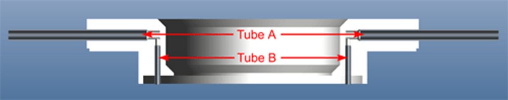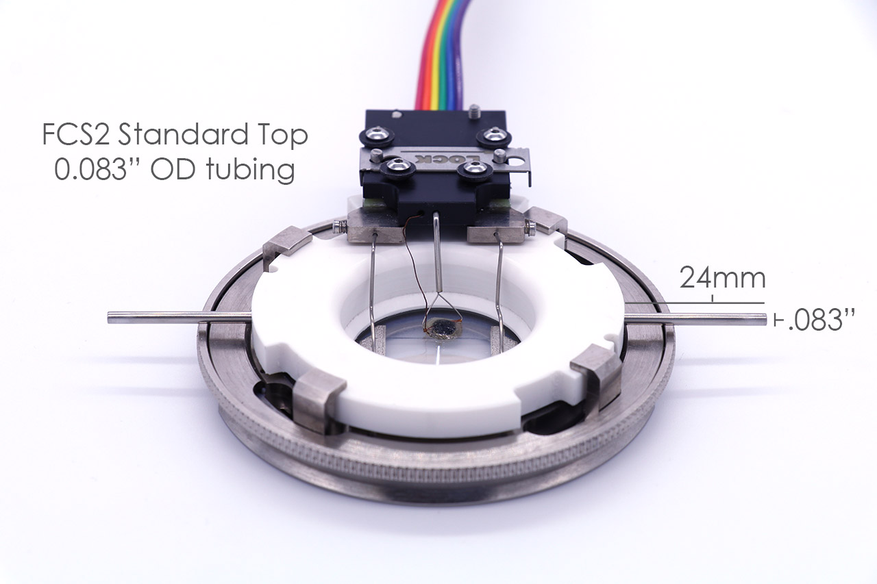 The Low Dead Volume Top is specifically designed to reduce the volume of media in the ports of the FCS2 from the point where the supply tubing attaches to the FCS2 through to the optical cavity where the cells reside for imaging. It is commonly used when working with expensive compounds and primers. Note: When using a Low Dead Volume Top, only the aperture of the tubes are reduced. The rest of the FCS2 is the same as the standard model. The following charts and examples illustrate the differences. Note that the volumes below are only for one side of the chamber, as this would indicate the in flow region of the top. The standard FCS2 has a 67.05μL volume. The inside diameter of the vertical tube provides ample flow for most experiments; on the order of fractional to milliliters/sec. However, the lowest dead volume top has a 12.85 μL volume. If a lower volume is required please contact a Bioptechs representative as custom tops can be produced.