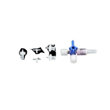 Leur taper fill port cap, humidifier top with gas inlet port, humidifier glass, humidifier bottom with gas output port and power adapter port