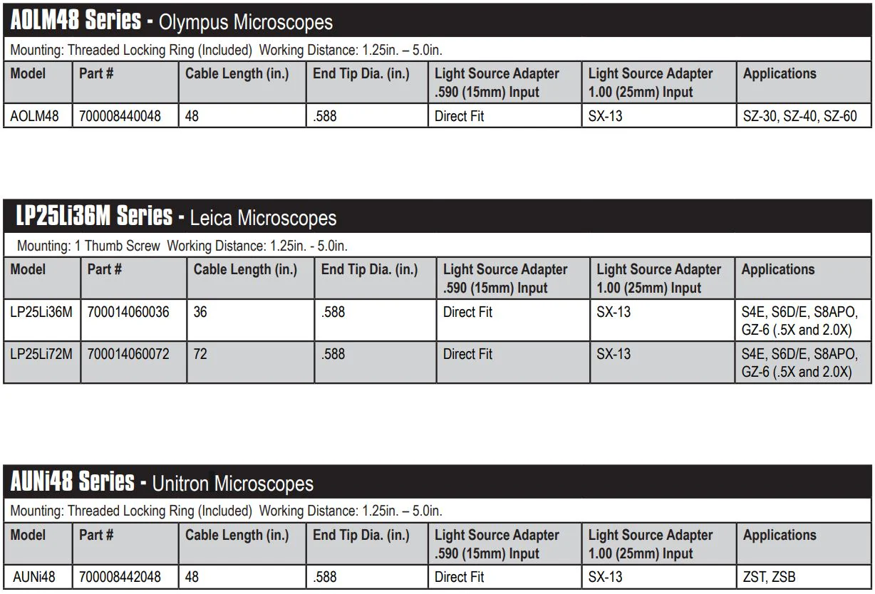 Designed to directly fit the most common stereo microscopes from Olympus, Nikon, Leica, and Unitron. These annular ring lights are a perfect fit so no adapters are required and they maximize your working area at the same time. For ease of ordering these ring lights can either be ordered individually or as a system with our 150 watt high intensity Mi-150 light source.