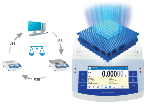 The balance may cooperate with computer by means of USB interface supposing a supplementary software has been installed (respective driver). The said driver may be downloaded from RADWAG website – SOFTWARE link or SUPPORT section.