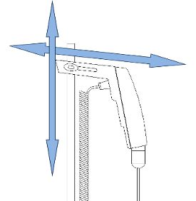 The two clamps allow height-regulation whilst a sliding clamp allows horizontal regulation.